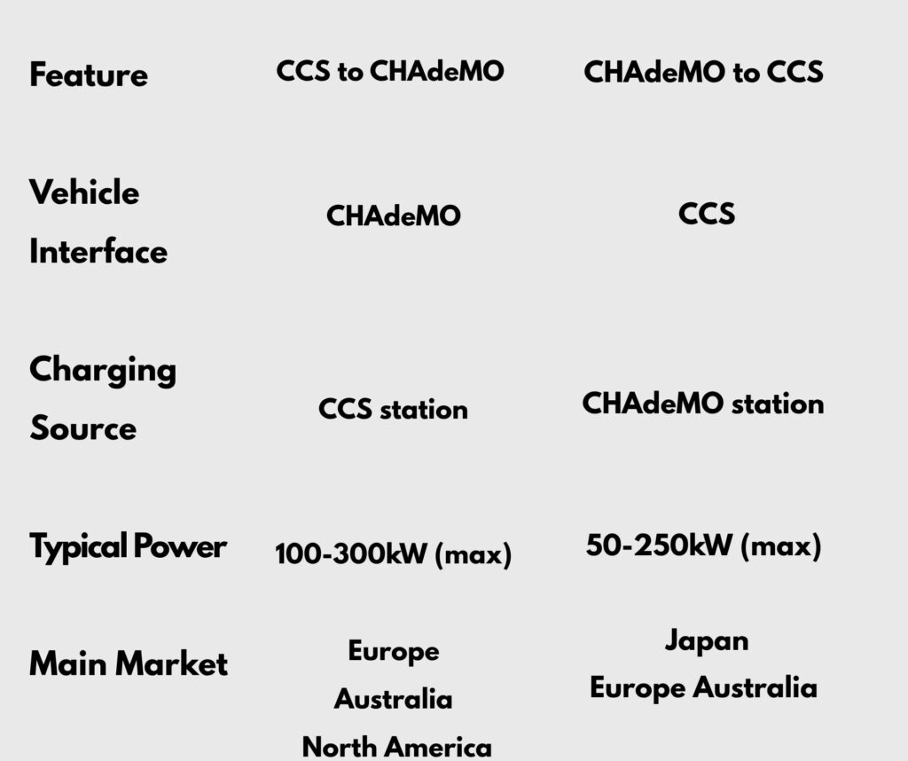 Q1. Are CCS to CHAdeMO and CHAdeMO to CCS adapters interchangeable?
